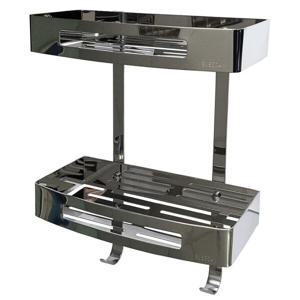 Полка Brimix 5656 литая, прямоугольной формы. Двухуровневая с крючками из нержавеющей стали 304 марки. Ширина 30 см.