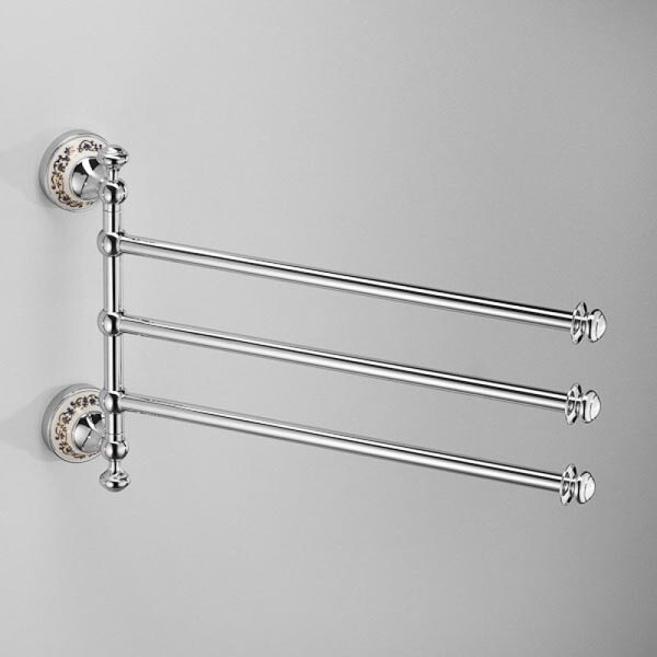 Полотенцедержатель тройной поворотный 7053052 Schein «Saine» удивляет своим роскошнейшим дизайном. Великолепный аксессуар прекрасно украсит ванные комнаты, оформленные в разных стилях: классика, неомодерн, хайтек и др. Сочетание золотистого металла и белой керамики поможет создать уютную и спокойную атмосферу в помещении. Добавляет изысканности орнамент по краю основания колбы. Поскольку для изготовления прибора использовались только высокотехнологичные материалы, он характеризуется высокой прочностью, надежностью и долговечностью.