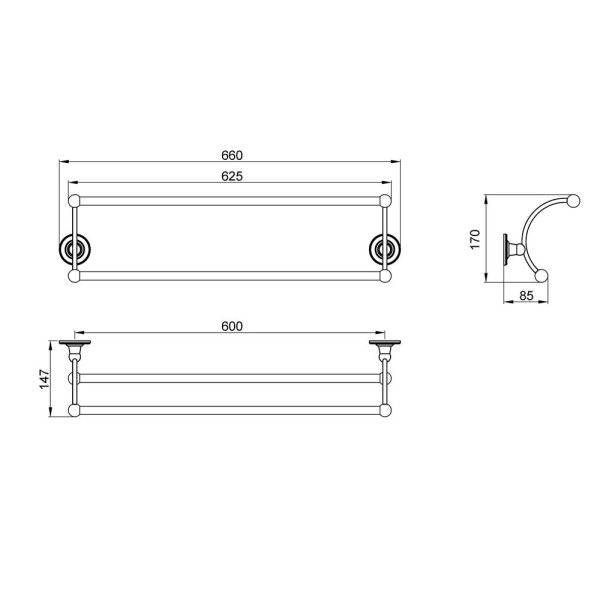 Двойной полотенцедержатель выполнен в классическом стиле (ретро).