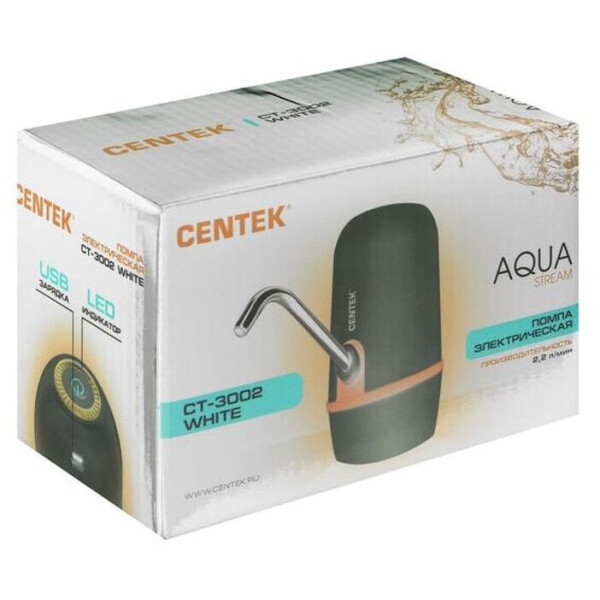 Электрическая помпа Centek 2.2л/мин 8Вт, 2 насоса, Li 1200 мАч, USB зарядка, LED CT-3002 White это специальная насадка для бутылей с питьевой водой.