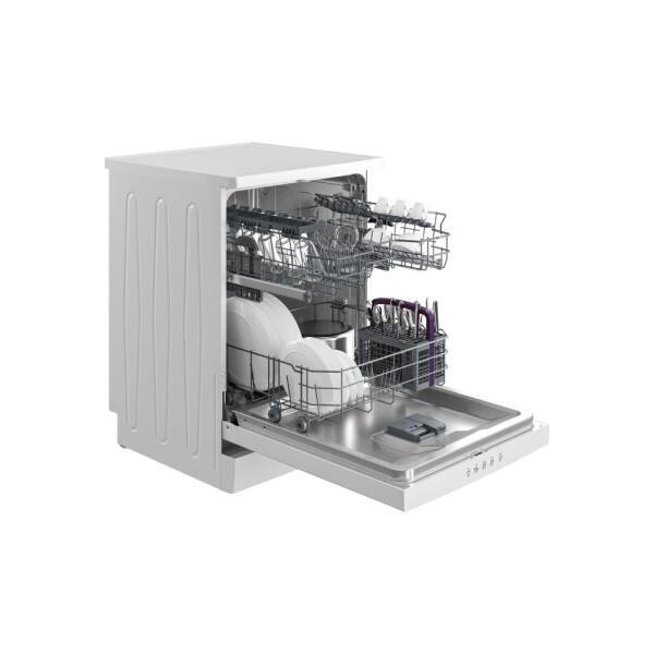 Отдельностоящая посудомоечная машина шириной 60см, универсальный мотор, поворотный переключатель, 5 программ, 14 комплектов, конденсационная сушка, полная защита от протечек Overflow Safety, регулировка верхней корзины.