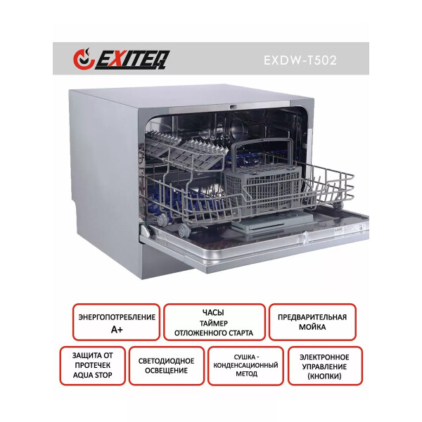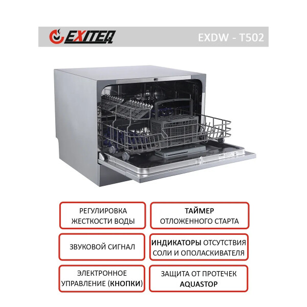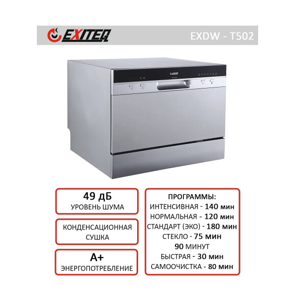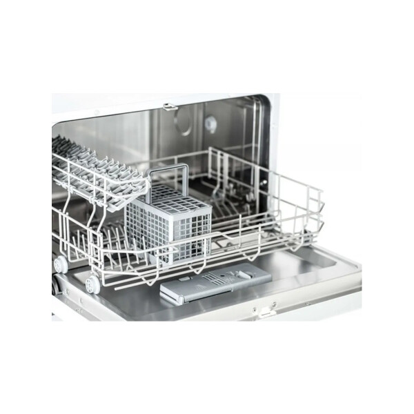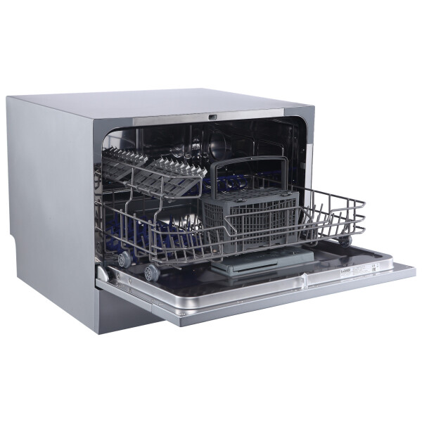 Посудомоечная машина компактная. Стандартные программы мойки: обычная программа для повседневного мытья, интенсивная программа для сильнозагрязненной посуды, экспресс-программа (быстрый цикл). Специальные программы: деликатная программа для мытья хрупкой посуды, экономичная программа для слабозагрязненной посуды.