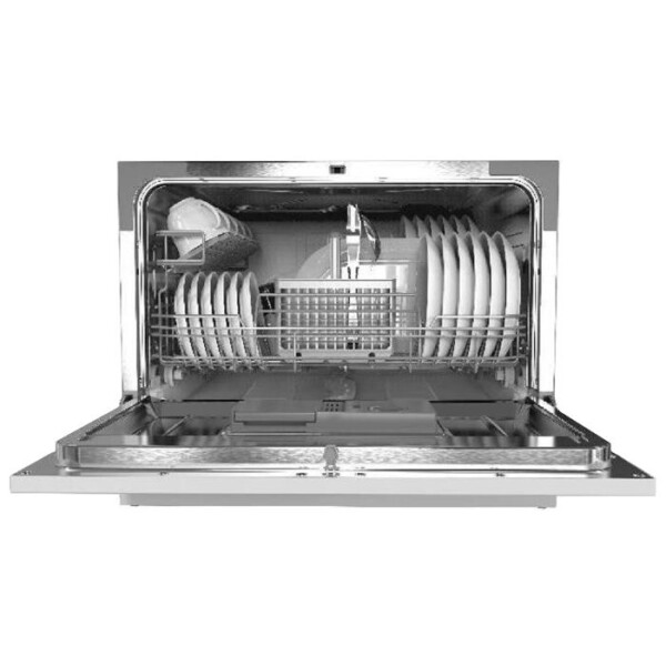 На панели располагается небольшой цифровой дисплей, позволяющий контролировать весь рабочий процесс. Система оснащена 7-ю различными режимами мойки. К их числу относятся программы для половинной загрузки и мытья хрупкой посуды. Имеются дополнения в виде индикаторов наличия ополаскивателя и соли.