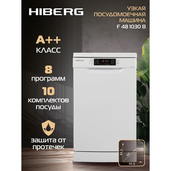 Посудомоечная машина Hiberg F48 1030 W - это незаменимый помощник для каждой современной хозяйки. Она позволяет экономить личное время, уменьшить потребление воды и обеспечивает идеальную чистоту посуды. Машина имеет понятное электронное управление, защиту от детей и класс энергопотребления A++.