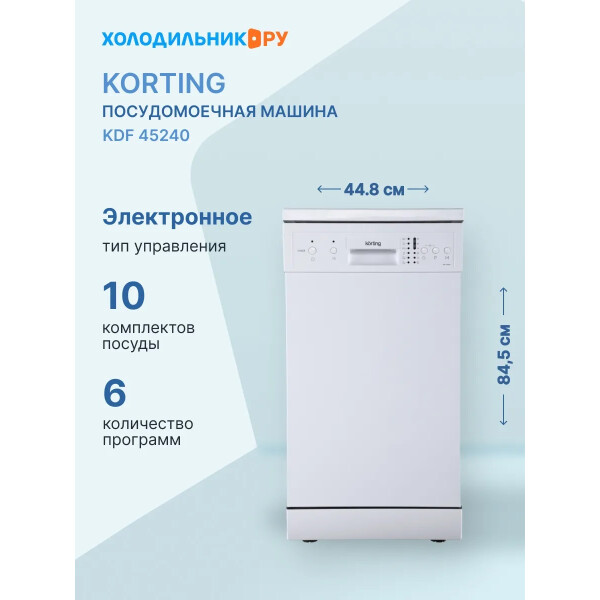 Посудомоечная машина Korting KDF 45240 имеет функцию половинной загрузки. Необязательно загружать камеру посудомойки полностью, чтобы запустить программу. Достаточно загрузить небольшое количество посуды после завтрака или легкого ужина, выбрать необходимую программу и активировать специальный режим половинной загрузки, при котором будут снижены ресурсы потребления воды и электроэнергии.