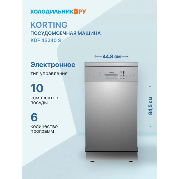 Посудомоечная машина Korting KDF 45240 S имеет функцию половинной загрузки. Необязательно загружать камеру посудомойки полностью, чтобы запустить программу. Достаточно загрузить небольшое количество посуды после завтрака или легкого ужина, выбрать необходимую программу и активировать специальный режим половинной загрузки, при котором будут снижены ресурсы потребления воды и электроэнергии.