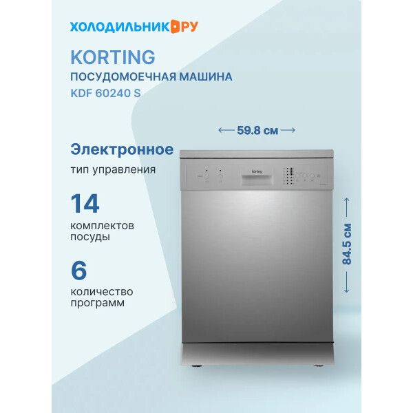 Посудомоечная машина Korting KDF 60240 S оснащена функцией половинной загрузки. Необязательно загружать камеру посудомойки полностью, чтобы запустить программу. Достаточно загрузить небольшое количество посуды после завтрака или легкого ужина, выбрать необходимую программу и активировать специальный режим половинной загрузки, при котором будут снижены ресурсы потребления воды и электроэнергии.