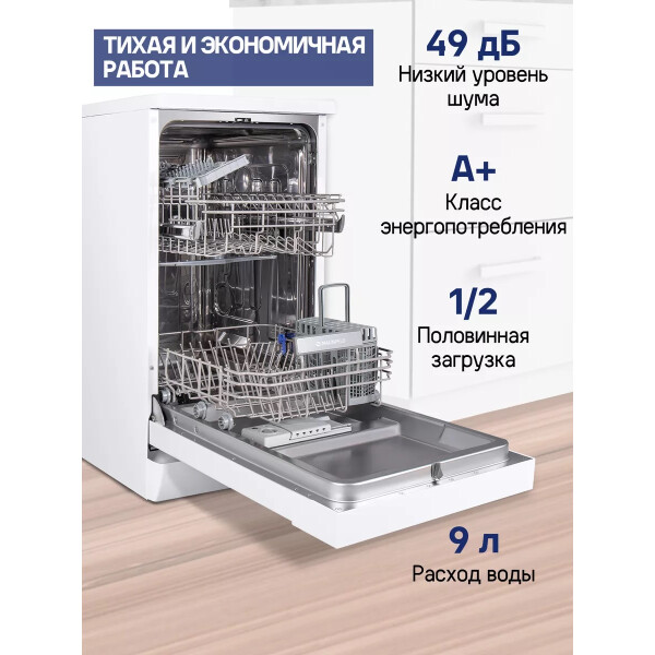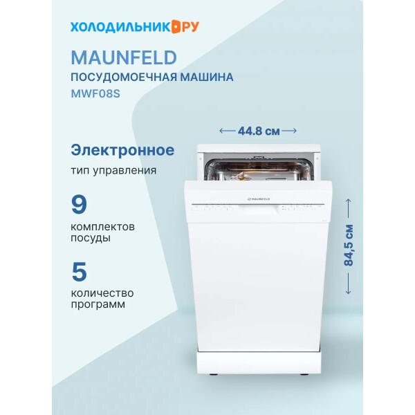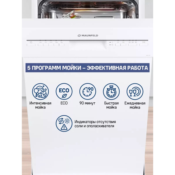 Посудомоечная машина MAUNFELD предназначена для мытья до 9 комплектов грязной посуды. Модель характеризуется электронным типом управления с LED-индикацией. Режим половинной загрузки позволяет снизить расход воды и электроэнергии. Стандартная защита от протечек гарантирует безопасную эксплуатацию прибора.