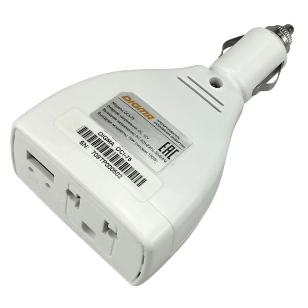 Digma DCI-75 устройство, предназначенное для преобразования входного постоянного напряжения 12 В в переменное напряжение 220 В с частотой 50 Герц на выходе. То есть автомобильный инвертор вырабатывает переменный ток, благодаря чему к нему можно подключать самые разнообразные электроприборы, инструменты, портативные устройства и компьютеры, работающие от бытовой сети переменного тока.