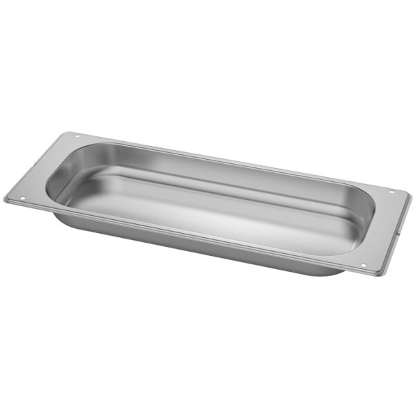 Противень из высококачественной нержавеющей стали подходит для духовых шкафов 60 см и компактных приборов с металлическими направляющими.
