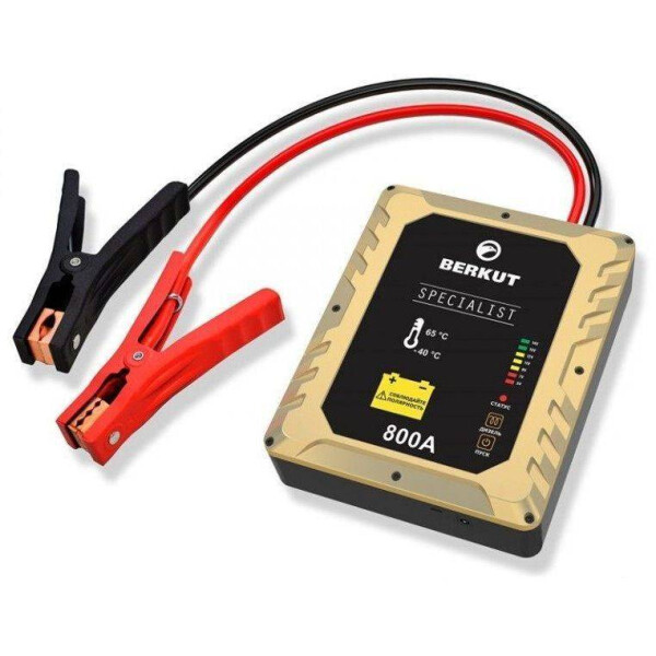 Пусковое устройство для автомобилей BERKUT JSC-800C служит для быстрого запуска двигателя автомобиля в случае разрядки бортового аккумулятора или при его отсутствии благодаря встроенным пусковым импульсным конденсаторам вместо обычных пусковых АКБ. В случае длительного хранения прибор не нужно подзаряжать - он полностью готов к работе. Данная модель отлично подходит для автомобилей как с бензиновым двигателем, так и с дизельным объемом 6000 и 4000 куб.см соответственно. Устройство заряжается тремя способами, самый быстрый - напрямую от клемм аккумуляторной батареи (до 5 минут). Также возможна зарядка от бортового прикуривателя 12 В (15-20 минут) и от устройства с мини USB кабелем 5 В (2-3 часа). Управление данной моделью очень просто - необходимо нажать и некоторое время удерживать пусковую кнопку до мигания зеленым цветом индикатора "Статус", через 5 секунд этот индикатор перестанет мигать и загорится красным цветом, после чего можно приступать к запуску двигателя.
