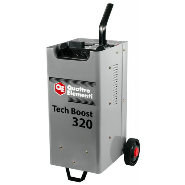 Достаточно распространенной проблемой у автомобиля является разряженность аккумуляторной батареи и невозможность завести двигатель. В такой ситуации неоценимую помощь окажет пуско-зарядное устройство QUATTRO ELEMENTI TechBoost 320. В его функции входит запуск автомобильного двигателя пусковым зарядом до 300 А. А кроме этого, данное устройство успешно справляется с зарядкой кислотных аккумуляторов. Зарядка возможна при напряжении 12 В или 24 В. Сила зарядного тока может принимать максимальное значение в 45 А. Питание QUATTRO ELEMENTI TechBoost 320 осуществляется от бытовой электросети, а потребляемая мощность составляет 1 кВт при зарядке аккумулятора и 6.4 кВт при запуске двигателя. Наблюдать за процессом зарядки можно благодаря цифровому дисплею. Данный прибор делает зарядку максимально комфортной.