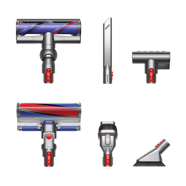 Dyson V8 Absolute + — это удобный вертикальный пылесос с электронным управлением. Мощность модели 115 Вт, а уровень шума при этом составляет всего 82 дБ, что делает устройство одновременно мощным и комфортным в использовании. Для удобства предусмотрена отсоединяемая портативная часть. Два рабочих режима уборки — обычная и турбо. Также есть функция сухой уборки.