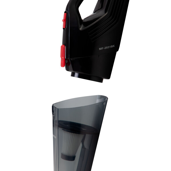 Данная модель может трансформироваться из вертикального в ручной - это позволяет съемная ручка и насадка. НЕРА фильтр обеспечивает качественную очистку воздуха, а циклонный фильтр эффективно очищает всасываемый воздух от грязи и пыли. Контейнер объемом 1 литр легко снимается и очищается, а длинный сетевой шнур (5 метров) позволяет достать даже самые удаленные уголки помещения.