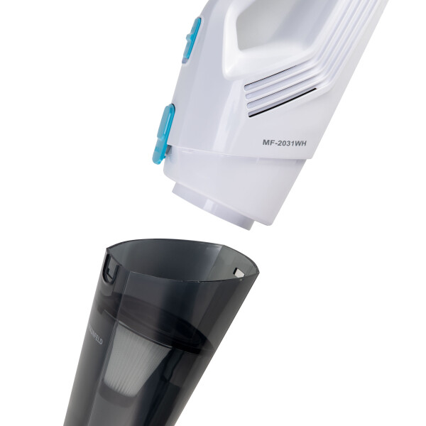 Пылесос MF-2031 обладает компактным корпусом и вертикальной конструкцией. Вертикальный пылесос легко трансформируется в ручной, циклонный фильтр эффективно очищает всасываемый воздух от грязи и пыли, а благодаря высокой мощности (600 Вт) модель удобна и эффективна в уборке. Контейнер объемом 1 л легко снимается и легко очищается, а питание от сети (шнур 5 м) избавляет от контроля заряда. Компактный размер и небольшой вес позволяют использовать пылесос без усилий.