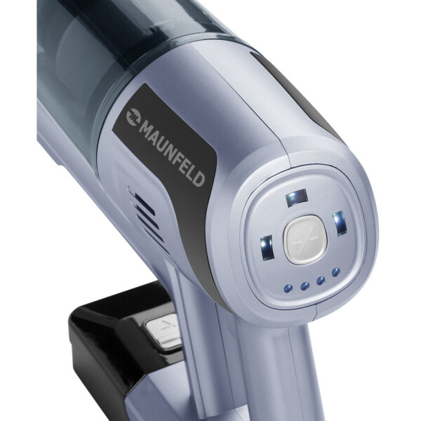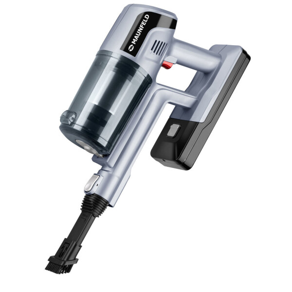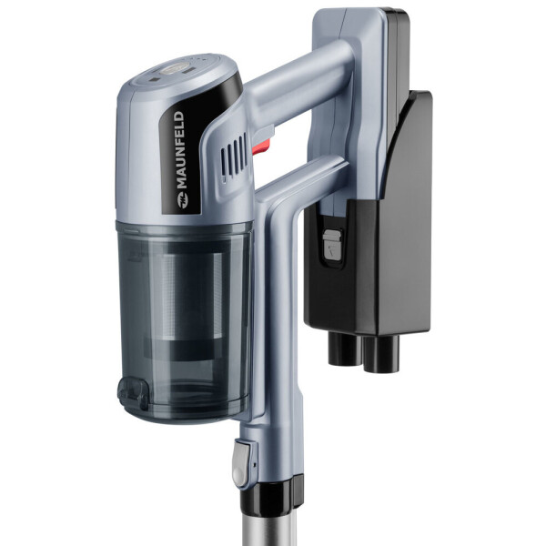 Пылесос Maunfeld MF-2032GR PRO заявлен в пластиковом корпусе серого цвета. Прибор имеет удобный съемный контейнер для сбора пыли. Электронное управление облегчит эксплуатацию прибором. Время зарядки аккумулятора 4,5 часа, что вполне хватит чтобы прибраться во всей квартире.