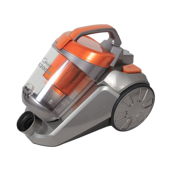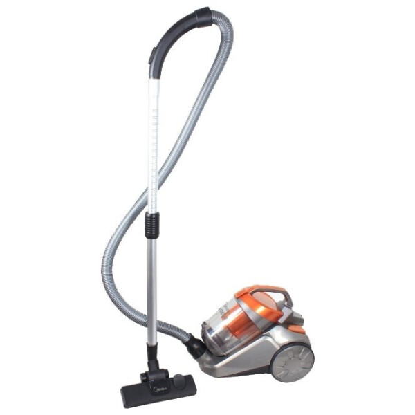 Пылесос Midea VCS43C2 – модель с современным дизайном и небольшими габаритами. Корпус устройства окрашен в оранжевый и серый цвета, а само устройство весит всего 4.5 кг. Мотор пылесоса работает с максимальной мощностью 2200 Вт, а мощность всасывания пыли достигает 400 Вт. Такие характеристики двигателя позволяют прибору справляться даже с самыми запыленными поверхностями. Циклонный фильтр Midea VCS43C2 очищает воздух, создавая воздушный поток с мощной центробежной силой, благодаря которой пыль оседает на стенках контейнера объемом 3 л. Пылесборник выполнен из пластика, а потому его можно промыть обычной водой. Радиус действия в 5 м обеспечивается длинным сетевым шнуром.