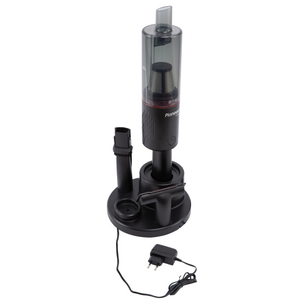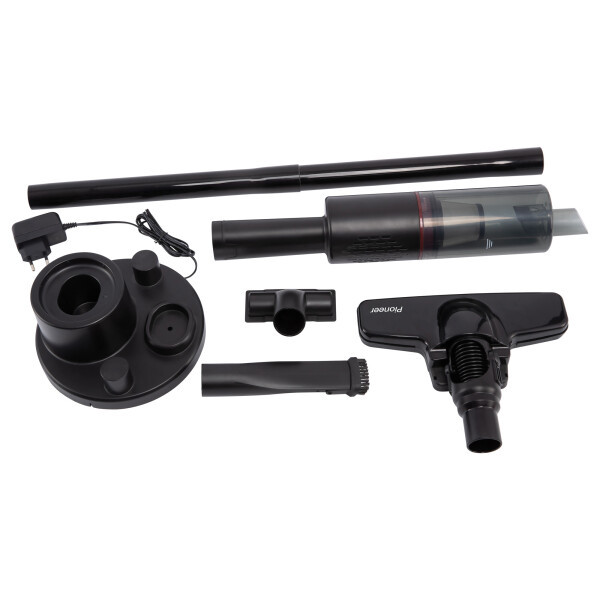 Комплектация: пылесос, адаптер питания, док-станция для зарядки и хранения пылесоса, щетка для пола, насадка для труднодоступных мест, щетка для мебели, гарантийный талон, инструкция на русском.