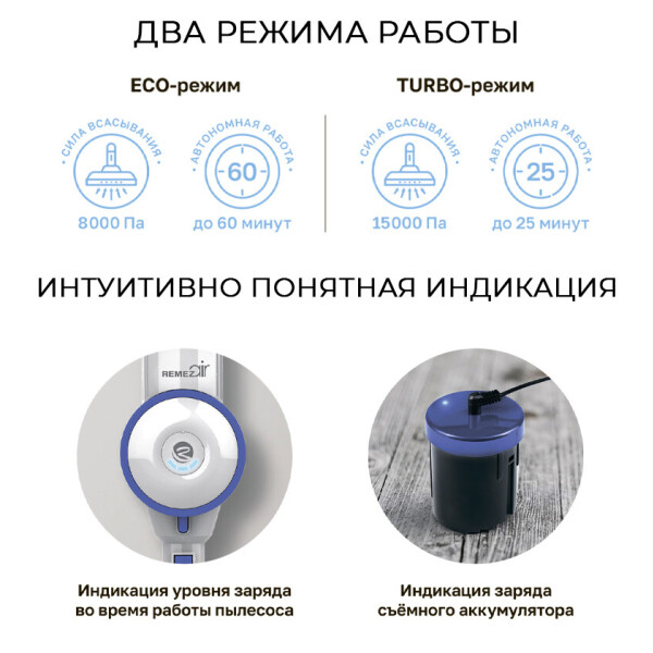 Вертикальный беспроводной пылесос REMEZair RMVC-501 MultiClick S