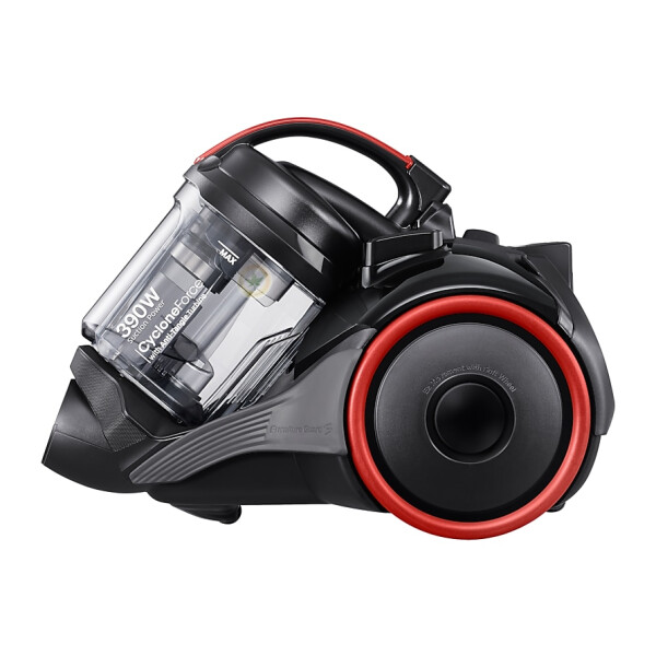Пылесос с контейнером для пыли Samsung VC15K4116VR оснащён турбиной CycloneForce, в которой есть специальная решётка. Она защищает мотор от засорения шерстью домашних животных и волосами: прибор будет работать с постоянно высокой мощностью всасывания, эффективно удаляя с пола, ковров и мягкой мебели весь сор.