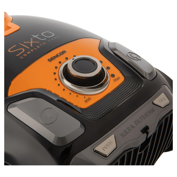 Sencor SVC 6920OR-EUE3 - высокоэффективный пылесос с мешком для сбора пыли. Горизонтальная и вертикальная позиция парковки насадки для пола для простого хранения или размещения на время перерыва в работе. Синтетический пакет для пыли на 3 л улучшает фильтрацию и гигиеничную ликвидацию пыли.