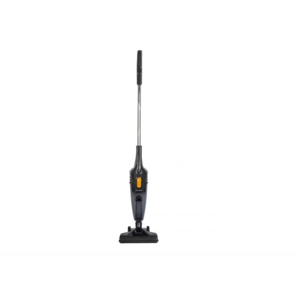 Устройство подключается к розетке 220 В сетевым проводом 4,5 м. Материал, из которого сделаны корпус и трубка - пластик. Можно снять с ручки портативный пылесос, чтобы убрать мусор в труднодоступных местах. В комплекте есть две насадки: для пола, ковров и щелевая.