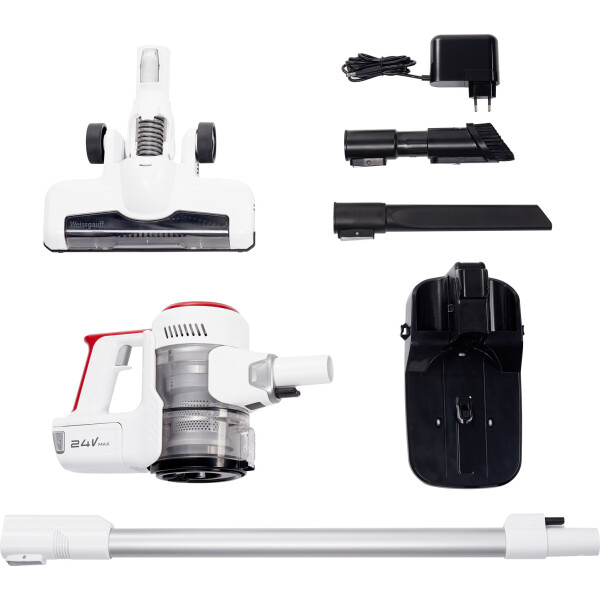 Weissgauff представляет Вашему вниманию вертикальный пылесос V9 Cyclone! Настенное крепление, прилагающееся к данному устройству, позволит грамотно разместить пылесос в комнате, не занимая при этом места на полу. Электрическая щетка с встроенным освещением позволит провести уборку даже в труднодоступных местах. Удобная съемная рукоятка позволит использовать эту модель и как полноценный вертикальный пылесос, и как портативный независимый блок. А комплект дополнительных аксессуаров лишь дополнительно расширит возможности этой великолепной модели!