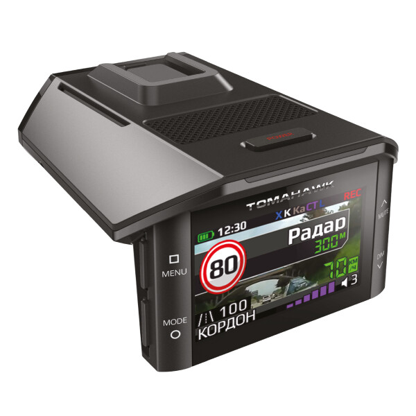 Сигнатурный радар-детектор Tomahawk Apache с встроенным видеорегистратором и GPS/Glonass модулем. Комбо-устройство выполнено в уже привычном форм-факторе с креплением на присоске к лобовому стеклу. С тыльной стороны устройства расположен большой яркий дисплей диагональю 2.7 дюйма на котором отображается вся информация во время детектирования излучаемых сигналов и по встроенной базе GPS камер и радаров. Радарная часть Tomahawk Apache построена на основе полноценной рупорной антенны, которая имеет более высокую чувствительность и дальность детектирования. Радар-детектор способен детектировать в всех используемых диапазонах в радарах и сигнал лазерного излучателя. Так же в радар-детекторе применяется сигнатурная технология детектирования излучаемых сигналов при помощи которой устройство может распознавать по типу сигнала радарный комплекс замера скорости и отделять такие сигналы от ложных не относящиеся к сигналам реального замера скорости при этом сокращая частоту ложных помех. Для предупреждения о стационарных камерах в устройстве предусмотрено информирование по интегрированной базе GPS камер, которая регулярно обновляется. Во время детектирования и предупреждения о камерах или радарах устройство сигнализирует звуковым и голосовым сопровождением с отображением уровня сигнала, скорости на дисплее.