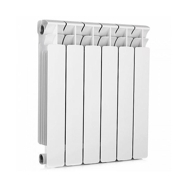 Модель Rifar Base 500, который составляет по мощности около 204 Вт одной секции, что сопоставимо по теплоотдаче с радиатором фирма Sira модель RS 500 — 200 Вт за одну секцию. Рабочее давление составляет 20 атмосфер, а опресовочное — 30 атмосфер, они конечно уступают биметаллическим радиаторам Global, у которых рабочее давление составляет 35 атмосфер, а опресовочное — 52,5 атмосфер. Но в любом случае такие высокие давления не могут быть в централизованной системе отопления, максимальное рабочее давление в системе ценрализованного отопления состовляет не более 14 атмосфер, а опрессовочное не более 20 атмосфер. Радиаторы фирмы Rifar модели Base имеют схожий конструктивную особенность с биметаллическими радиаторами Global, их внутренний каркас выполнен из стали и сверху залит алюминием. Их полная высота составляет порядка 570 мм, а глубина порядка 100 мм. Выкрашены радиаторы в белый класический цвет, RAL 9016. Гарантийный срок службы радиаторов составляет около 25 лет.