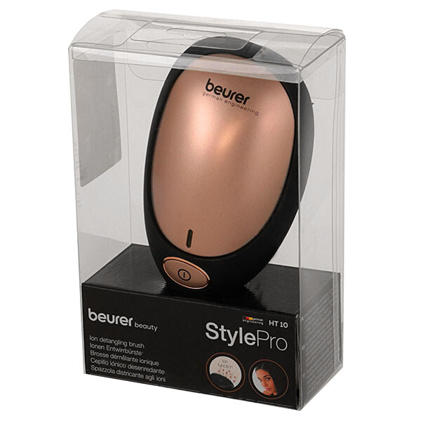 С помощью щетки для распутывания волос с ионизацией Beurer HT 10 Вы с легкостью сможете расчесать волосы. Функция ионизации без труда сделает их мягкими шелковистыми и придаст им естественный и ухоженный вид. Когда функция ионизации включена, щетка для распутывания волос вырабатывает отрицательные ионы, обладающие антистатическим эффектом. С их помощью волосы, которые находятся под статическим напряжением, перестают электризоваться.