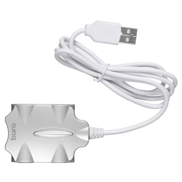 Разветвитель USB 2.0 Buro BU-HUB4-0.5-U2.0 Candy серебристого цвета с интерфейсом USB 2.0 и количеством USB портов - 4 шт.