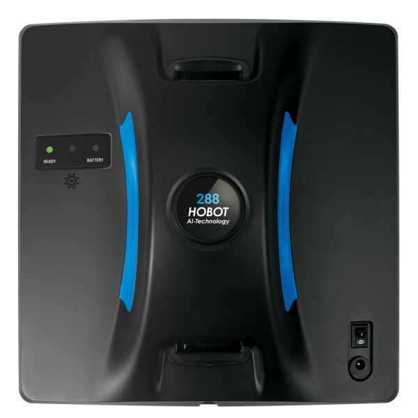 Hobot 288 может управляться как при помощи пульта ДУ, так и при помощи смартфона на системе iOS или Android, через Bluetooth 4.0. Робот повторяет движения человека, моющего окно. Особенно эффективен при уборке высоких окон и наружных стекол, потому что он возвращается на то место, откуда начал работу. Оснащен двумя гусеницами, которые позволяют быстро передвигаться по поверхности. Квадратный метр за 2.4 минуты.. Работает от розетки. При отключении света получает энергию от встроенного аккумулятора. Лазерный датчик определяет край окна. Очищает безрамные поверхности.