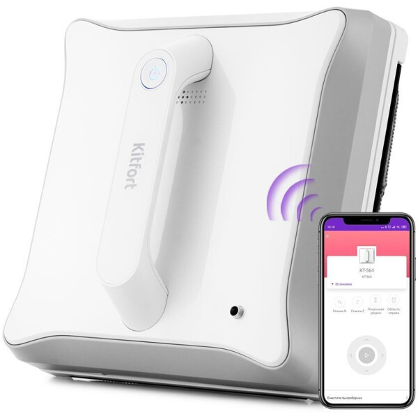 Робот Kitfort КТ-564 предназначается для мытья стёкол изнутри и снаружи, кафельных и зеркальных покрытий в жилых и небольших офисах. Робот оснащён вентилятором, благодаря которому создаётся разрежение, и он надёжно удерживается на вертикальной поверхности.