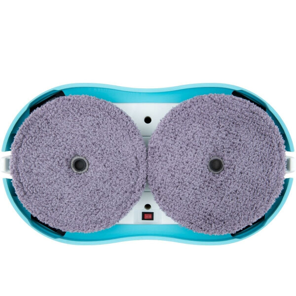 Робот для влажной протирки пола Everybot RS500 использует две большие и плотные салфетки из микрофибры. Салфетка крепится к основанию вращающегося диска на липучки. Диски имеют резервуар для воды объемом 60 мм. Предварительно увлажнив салфетки и наполнив резервуары водой, можно не беспокоиться о необходимости смачивать их в течение всего цикла уборки. Специальные отверстия в основании вращающихся дисков равномерно распределяют воду по поверхности микрофибры. Микрофибра изготовлена из двойного материала: мягкой и более жесткой щетины. Такая комбинация способствует лучшему очищению поверхности от сухих и влажных загрязнений. Благодаря вращающимся дискам отпадает необходимость в использовании ведущих колес. Как показывают тесты с конкурентными решениями, такая технология заметно лучше справляется с очисткой гладкой поверхности.