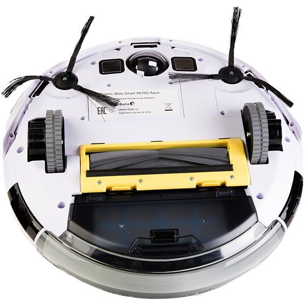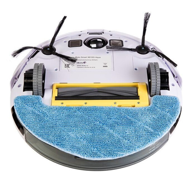 Робот-пылесос iBoto Smart X610G Aqua может одновременно мыть пол и собирать мусор. Его вращающиеся боковые щётки легко проникают в труднодоступные места, а резиновый ролик особой конструкции собирает волосы и шерсть домашних животных. Специальная тряпочка постепенно смачивается чистящим раствором, помогающим размягчать засохшую грязь и большие отложения пыли. Робот оснащается инфракрасными датчиками и гироскопом. Он постепенно запоминает особенности помещения, повышая качество уборки и сокращая затраты времени. В нём также предусмотрен режим удаления пятен, в котором радиус действия ограничивается одним метром. Компактное устройство намного тише обычного пылесоса и сопоставимо с ним по уровню очистки воздуха. Оно снабжено двумя фильтрами, улавливающими даже микроскопическую пыль и другие аллергены. Литий-ионный аккумулятор высокой ёмкости рассчитан на 90 - 120 минут непрерывной уборки. По истечении этого времени робот автоматически отправится на зарядную станцию. Через 180 - 240 минут он вновь будет готов к работе.