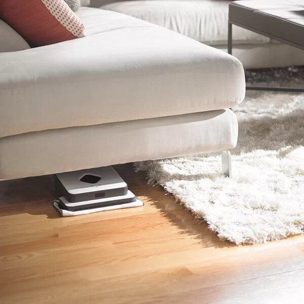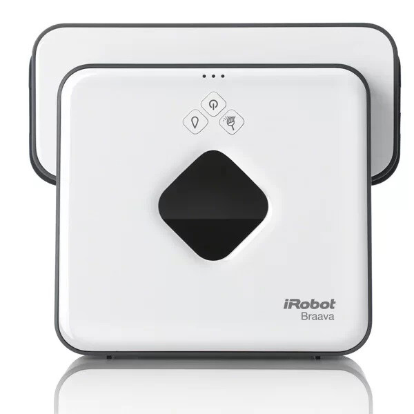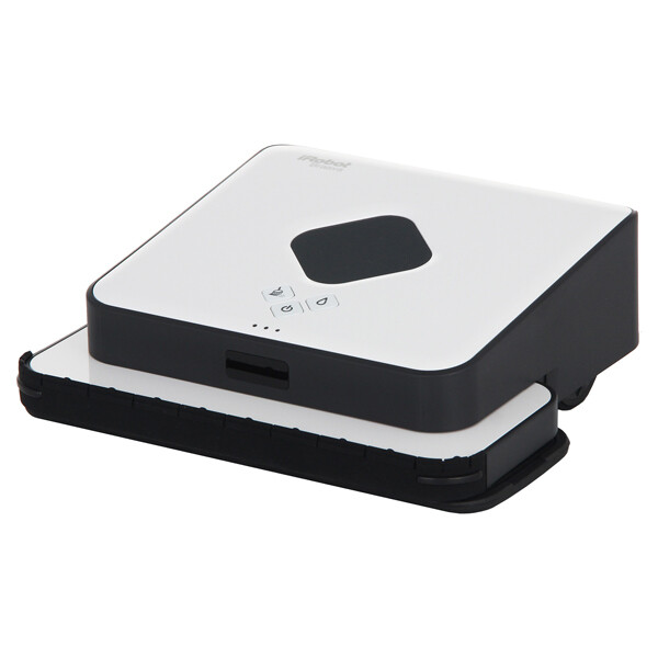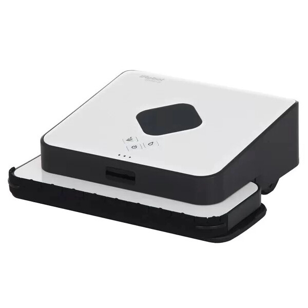 Робот-полотер iRobot Braava 390T – отличный вариант для владельцев домов с паркетными или ламинированными полами. В отличие от других моделей, которые разбрызгивают моющее средство, он использует смоченную тряпку из микрофибры – она не повреждает даже наиболее чувствительные покрытия. Устройство использует в качестве основного ориентира навигационный куб NorthStar. Такой принцип действия позволяет ему мгновенно вычислять оптимальную траекторию движения для быстрой и эффективной уборки помещения. Покупая дополнительные кубы, пользователь может расширить зону действия робота на весь дом. В конструкции пылесоса предусмотрено использование батареи с большой ёмкостью и экономичного электромотора. Благодаря этому он может без подзарядки обработать до 93 квадратных метров при включении режима сухой уборки и 32 квадратных метров при использовании чистящих средств. Устройство не нуждается в какой-либо сложной подготовке к запуску – достаточно залить жидкость, надеть тряпку из микрофибры и нажать на одну кнопку.