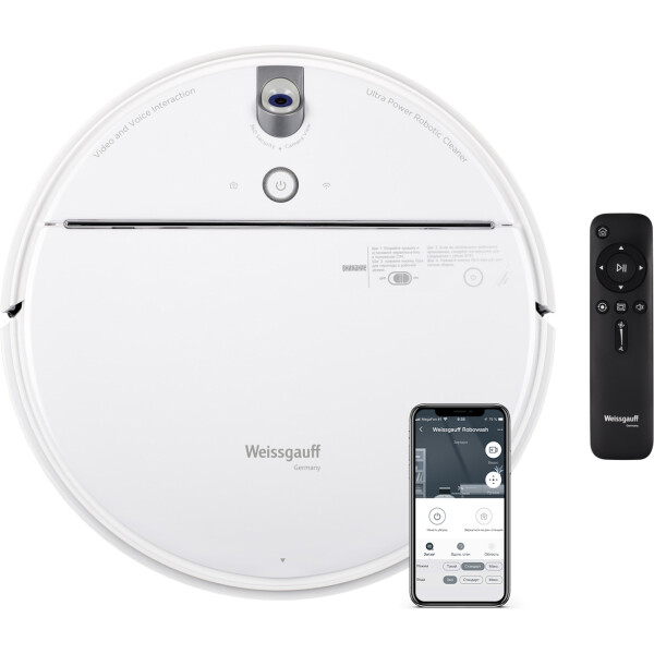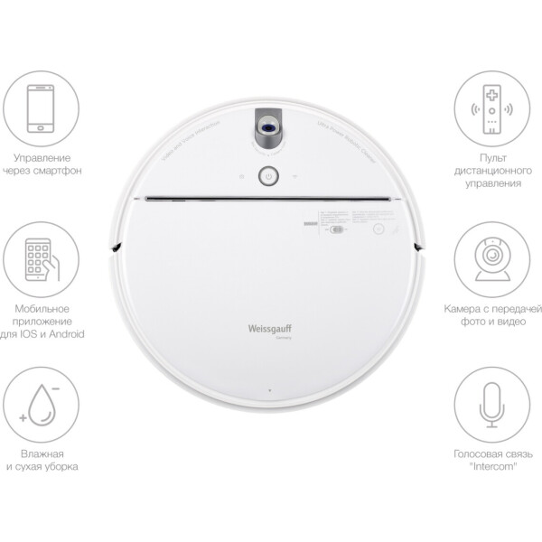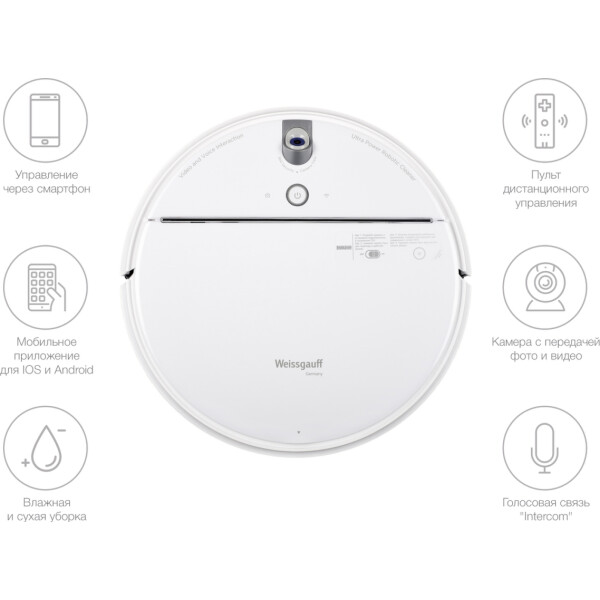Weissgauff представляет Вашему вниманию модель робота-пылесоса Robowash Vision! Это замечательное устройство сочетает в себе поистине фантастический набор функций: режимы влажной и сухой уборки, голосовое взаимодействие с пользователем на русском языке, управление при помощи мобильного приложения, возможность получать на свой смартфон данные с камеры робота-пылесоса в реальном времени, а также передавать свои голосовые сообщения через робот-пылесос, используя функцию Intercom. Все это и многое другое нашло свое воплощение в новой модели Weissgauff Robowash Vision!