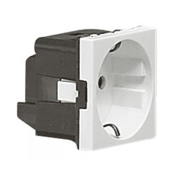 Розетка Legrand 77211, серии Mosaic, с заземлением, со шторками, на зажимах, 2К+3, немецкий стандарт. Для монтажа в монтажные коробки, напольные коробки, колонны, блоки розеток и настольные блоки.