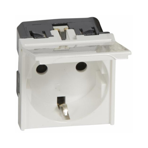 Розетка Legrand 77219, серии Mosaic с заземлением и крышкой, 2К+З, с автоматическими клеммами, антибактериальная, немецкого стандарта. Способ монтажа в кабель-канал.