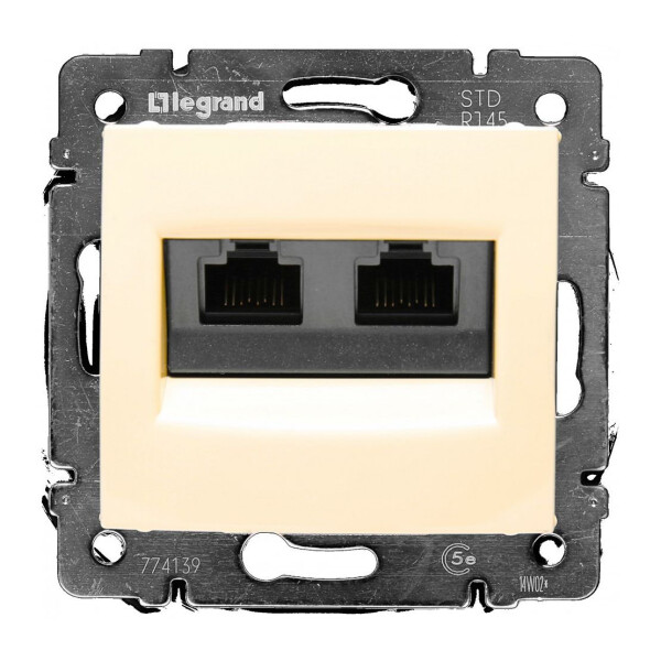 Розетка Legrand 774139, серии Valena, информационная, компьютерная, в рамку, два выхода, без захватов, монтаж только на винтах. Розетка быстрого подключения — без применения специальных инструментов. Контакты, маркированные двойными цветовыми кодами.