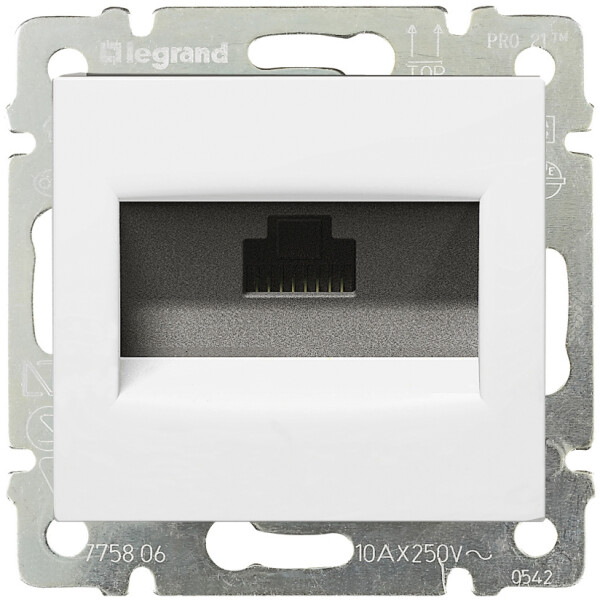 Розетка Legrand 774230, серии Valena, информационная, компьютерная, один выход, на захватах. Розетка быстрого подключения — без применения специальных инструментов. Контакты, маркированные двойными цветовыми кодами.
