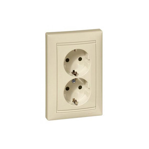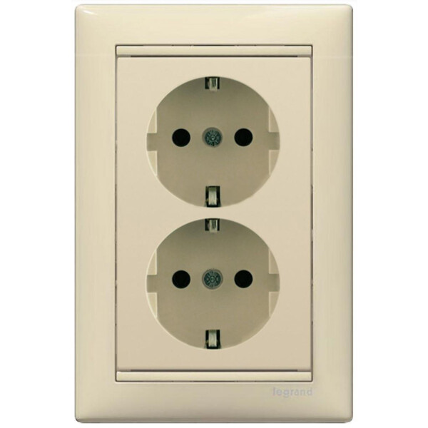 Розетка двойная с заземляющим контактом Legrand Valena 774370 (16 А, в сборе, скрытая установка, кремовый).