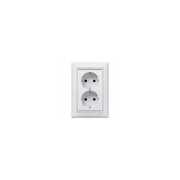 Розетка Legrand 774400, серии Valena, моноблок двойная, с заземлением, в сборе, 2х2К+3, немецкий стандарт, винтовые зажимы. Встроенный монтаж в одноместной монтажной коробке диаметром 60 мм. Поставляется в сборе (лицевая панель и рамка).