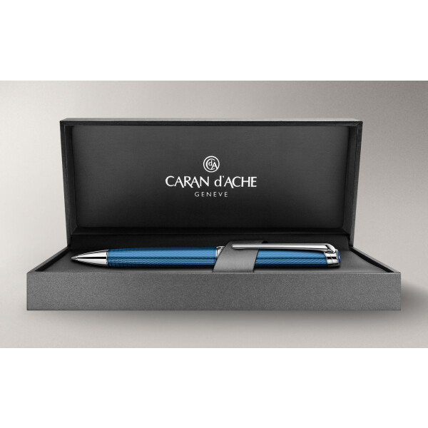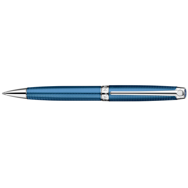 Новая яркая и волнующая шариковая ручка Caran d'Ache Leman Grand Blue. Корпус ручки и колпачок украшены изящной гравировкой, напоманиющей мелкую рябь на поверхности воды. Яркий полупрозрачный лак изумительного цвета синевы океанских глубин придает изысканности корпусу ручки и не оставит вас равнодушным, увлекая навстречу приключениям. Детали дизайна отделаны серебром с родиевым покрытием. Толщина пишущего узла М.