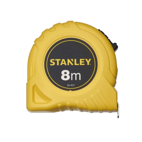 Рулетка 8 м STANLEY 0-30-457 применяется как в быту, так и в профессиональной сфере. Изделие имеет достаточно большую длину мерительного полотна - 8 м, что позволяет использовать рулетку на строительных площадках. Инструмент оснащен надежным сматывающим механизмом, который защищен пластиковым корпусом от разрушения при случайных падениях. Рулетка имеет функцию стопорения полотна, что облегчает процесс замера.