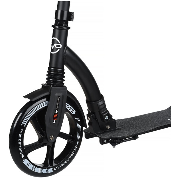 С этим самокатом значительно сократиться время поездки, а эмоций станет больше. Надежная и легкая алюминиевая конструкция самоката безопасна и выдерживает вес до 100 кг. Переднее колесо имеет увеличенный диаметр 230мм, заднее 180мм. Такое сочетание износостойких полиуретановых колес, вместе с подшипниками ABEC-7 обеспечивает самокат отличной скоростью и маневренностью. Модель имеет быстрый разгон и отличный накат не только на асфальте, но и на тротуарной плитке. Удобный складной механизм придает мобильности при перемещении самоката, а передний амортизатор сгладит неровности дорожного покрытия. Для удобства парковки самокат оборудован складывающейся подножкой. Модель представлена в двух классических цветах элегантный черный и лаконичный белый.