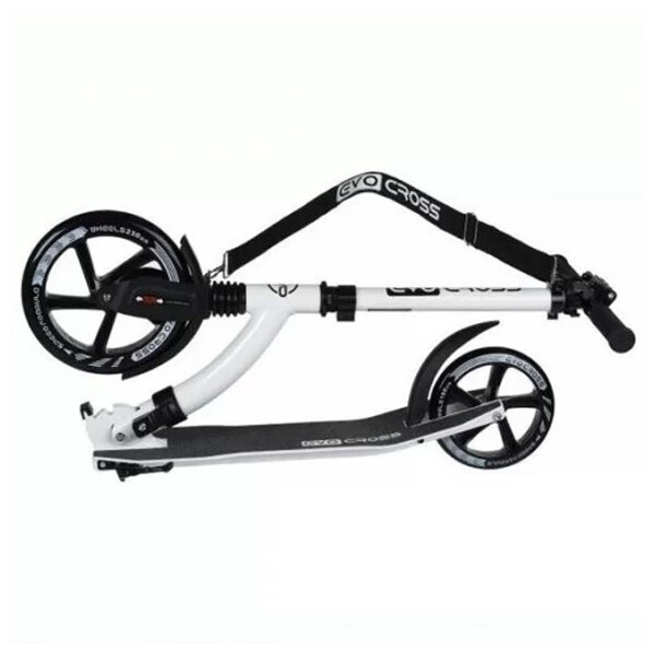 EVO CROSS ведущий городской самокат линейки EVO. С этим самокатом значительно сократиться время поездки, а эмоций станет больше. Надежная и легкая алюминиевая конструкция самоката безопасна и выдерживает вес до 100 кг. Переднее колесо имеет увеличенный диаметр 230мм, заднее 180мм. Такое сочетание износостойких полиуретановых колес, вместе с подшипниками ABEC-7 обеспечивает самокат отличной скоростью и маневренностью. Модель имеет быстрый разгон и отличный накат не только на асфальте, но и на тротуарной плитке. Удобный складной механизм придает мобильности при перемещении самоката, а передний амортизатор сгладит неровности дорожного покрытия. Для удобства парковки самокат оборудован складывающейся подножкой. Модель представлена в двух классических цветах элегантный черный и лаконичный белый.