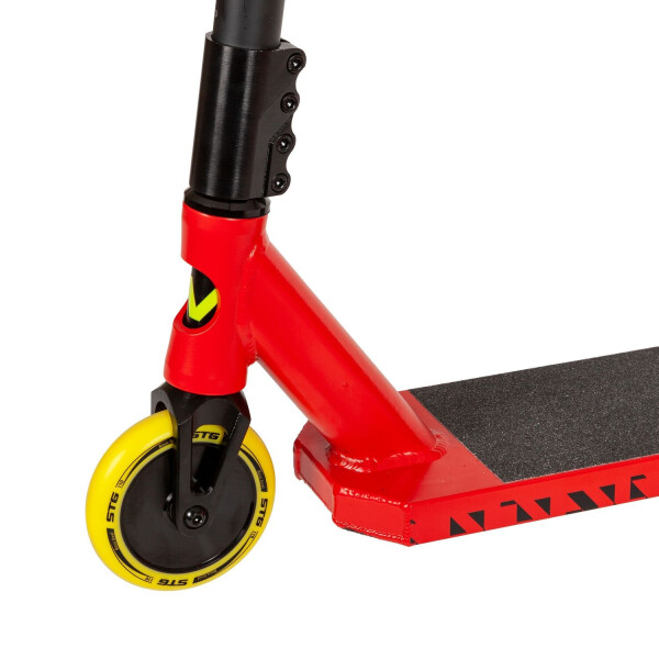 Любители многофункциональных трюковых самокатов оценят по достоинству линейку Pixel. Ее представитель Pixel 90 - модель для стрита. Именно размеры деки и прочного, хромолевого Т-образного руля дают возможность кататься по улицам и преодолевать все препятствия. По классике вилка и колеса исполнены из жесткого, но легкого алюминия, для интегрированной рулевой колонки была выбрана удобная и надежная компрессия SCS, которая отвечает за плавное вращение.