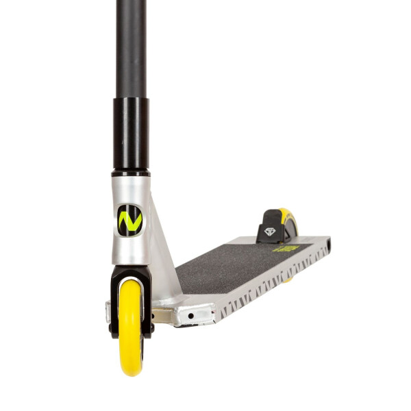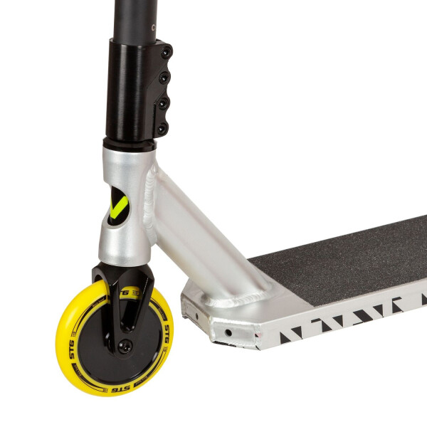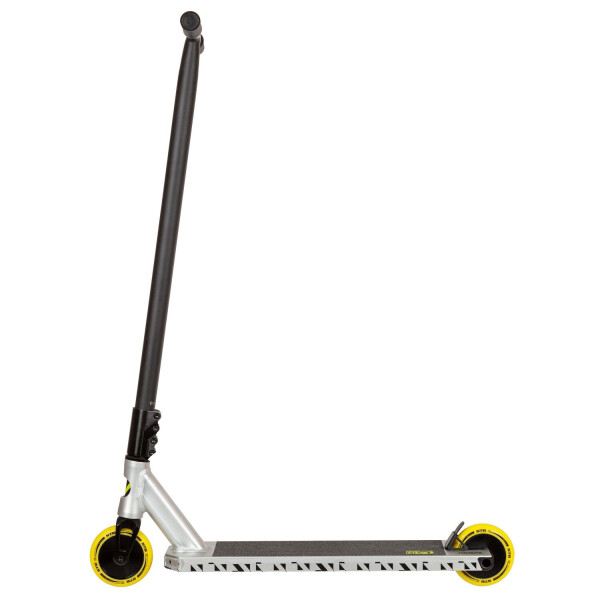 Любители многофункциональных трюковых самокатов оценят по достоинству линейку Pixel. Ее представитель Pixel 90 - модель для стрита. Именно размеры деки и прочного, хромолевого Т-образного руля дают возможность кататься по улицам и преодолевать все препятствия. По классике вилка и колеса исполнены из жесткого, но легкого алюминия, для интегрированной рулевой колонки была выбрана удобная и надежная компрессия SCS, которая отвечает за плавное вращение.