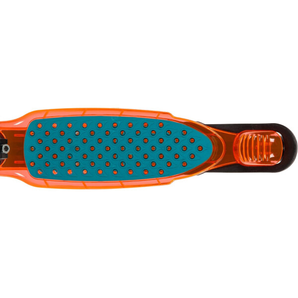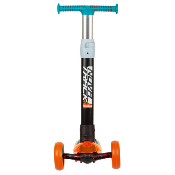 Этот детский самокат-кикборд обязательно понравится вашему ребенку! RAINBOW PRO TRANSPARENT оснащен удобным складным механизмом по кнопке. Регулируемый по высоте руль с мягкими грипсами, надежный и простой в использовании ножной тормоз сделают катание комфортным. А стильная и яркая расцветка не оставит никого равнодушным. Кикборд представлен в розово-фиолетовом и сине-оранжевом цветах. Обращаем внимание, что руль на этой модели несколько шире - 30 см, а диапазон регулировки по высоте от 64 см до 69 см. Самокат рассчитан на детей от трех лет. С этим самокатом ребенок точно получит максимум внимания во дворе и будет счастлив!
